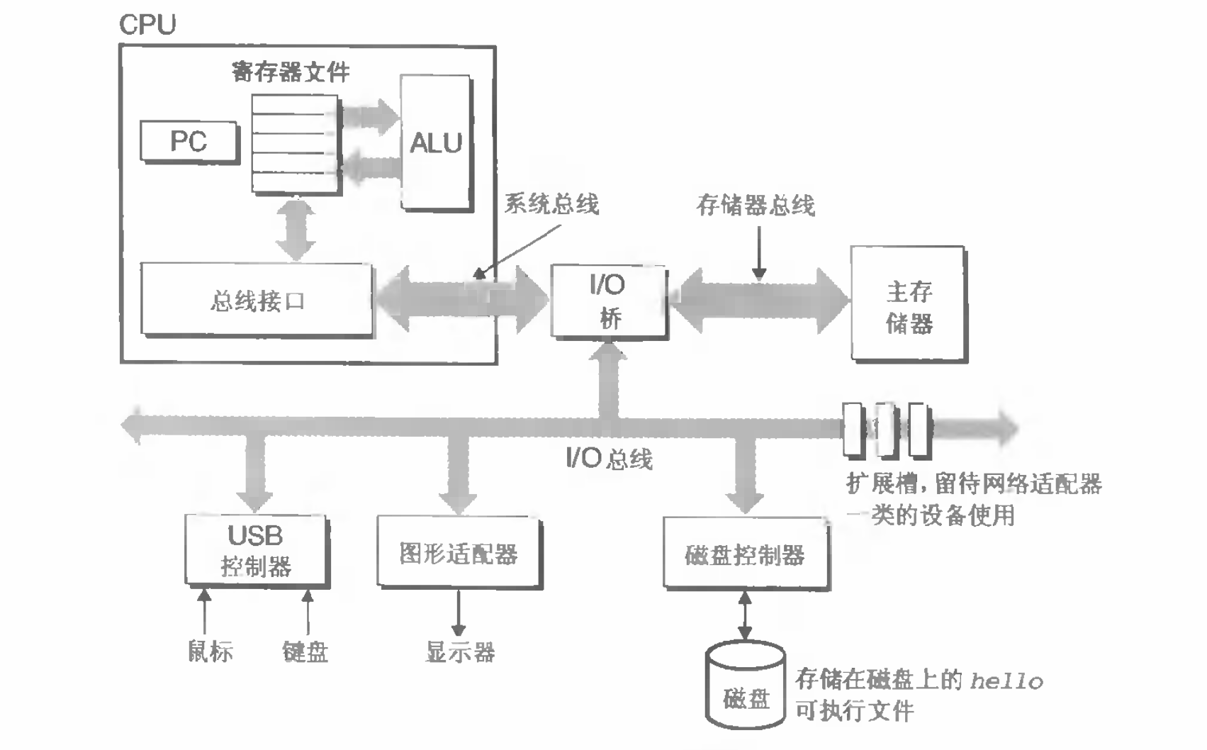 U puts # U = undefined,表示未解析- 链接阶段:由于我们的 hello 程序调用了 printf 函数,它是标准 C 库中的一个函数,每个 C 编译器都提供。printf 函数存在于一个名为 printf.o 的单独的预编译目标文件中,而这个文件必须以某种方式并入到我们的 hello.o 程序中。链接器(ld)亲负责处理这种并入,结果就得到 hello 文件,这个可执行文件加载到存储器后,由系统负责执行。
