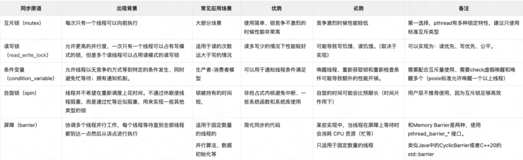 pthread 接口提供的几种同步原语如下: